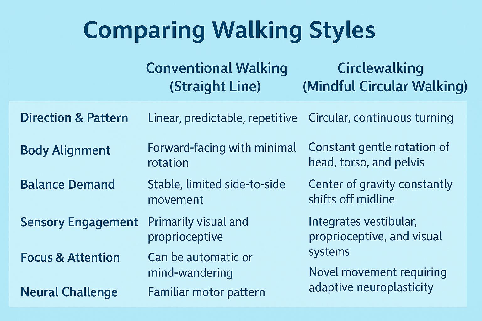 Circlewalking is a mindful, integrative movement practice that harmonizes physical stability, sensory coordination, and mental focus.